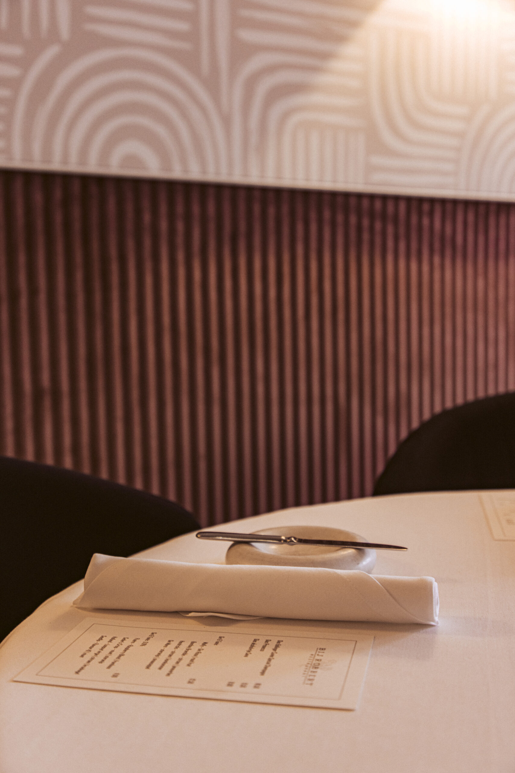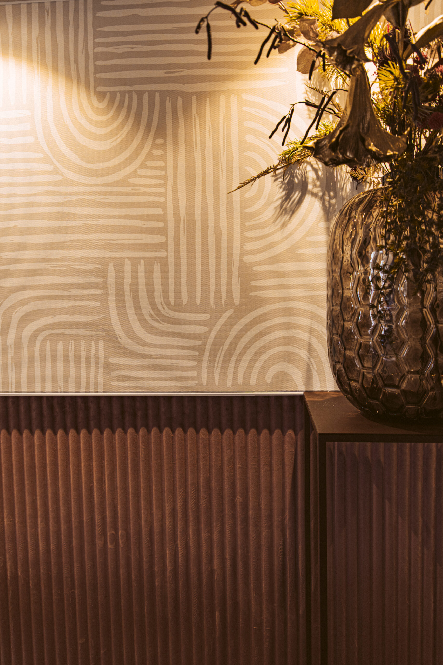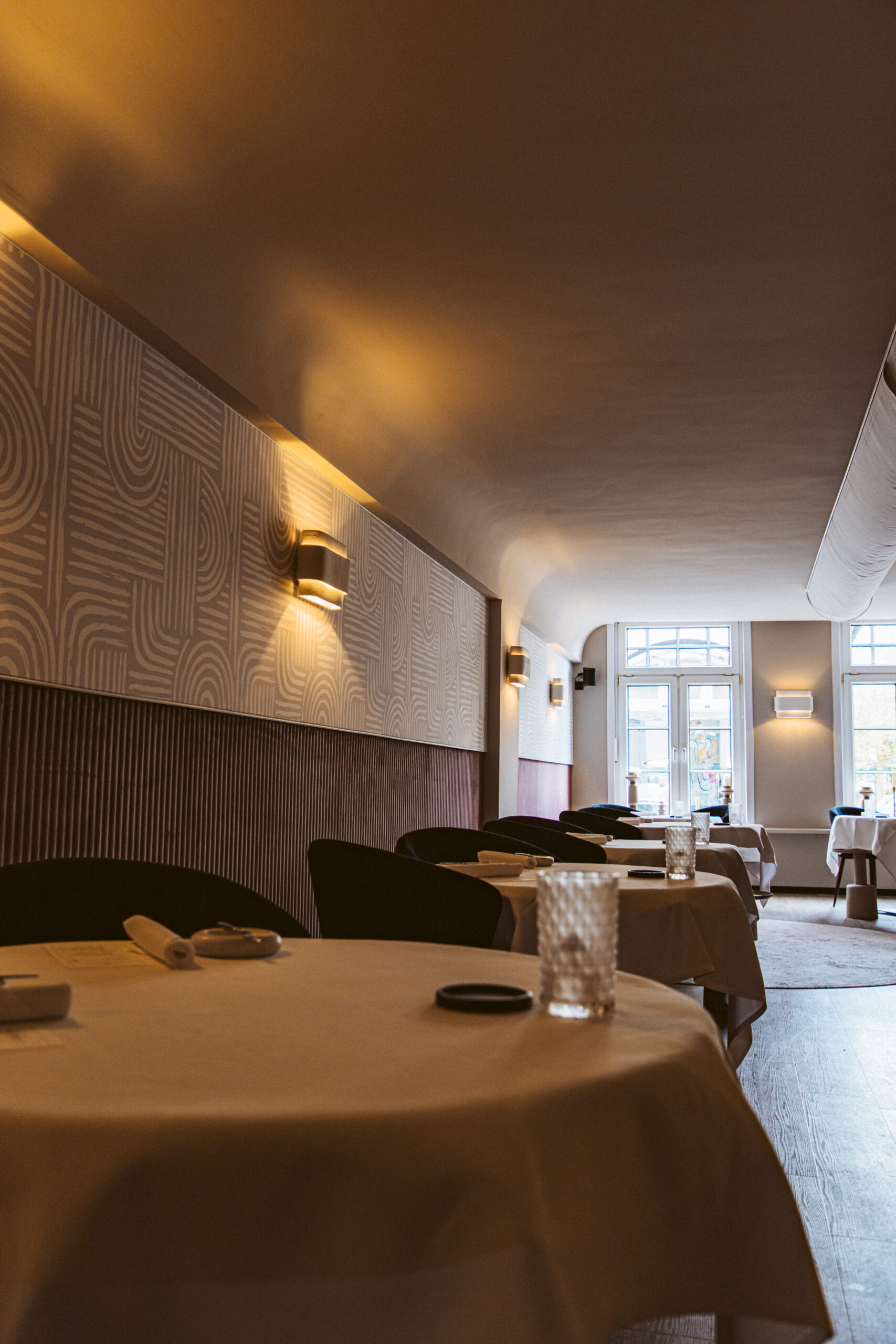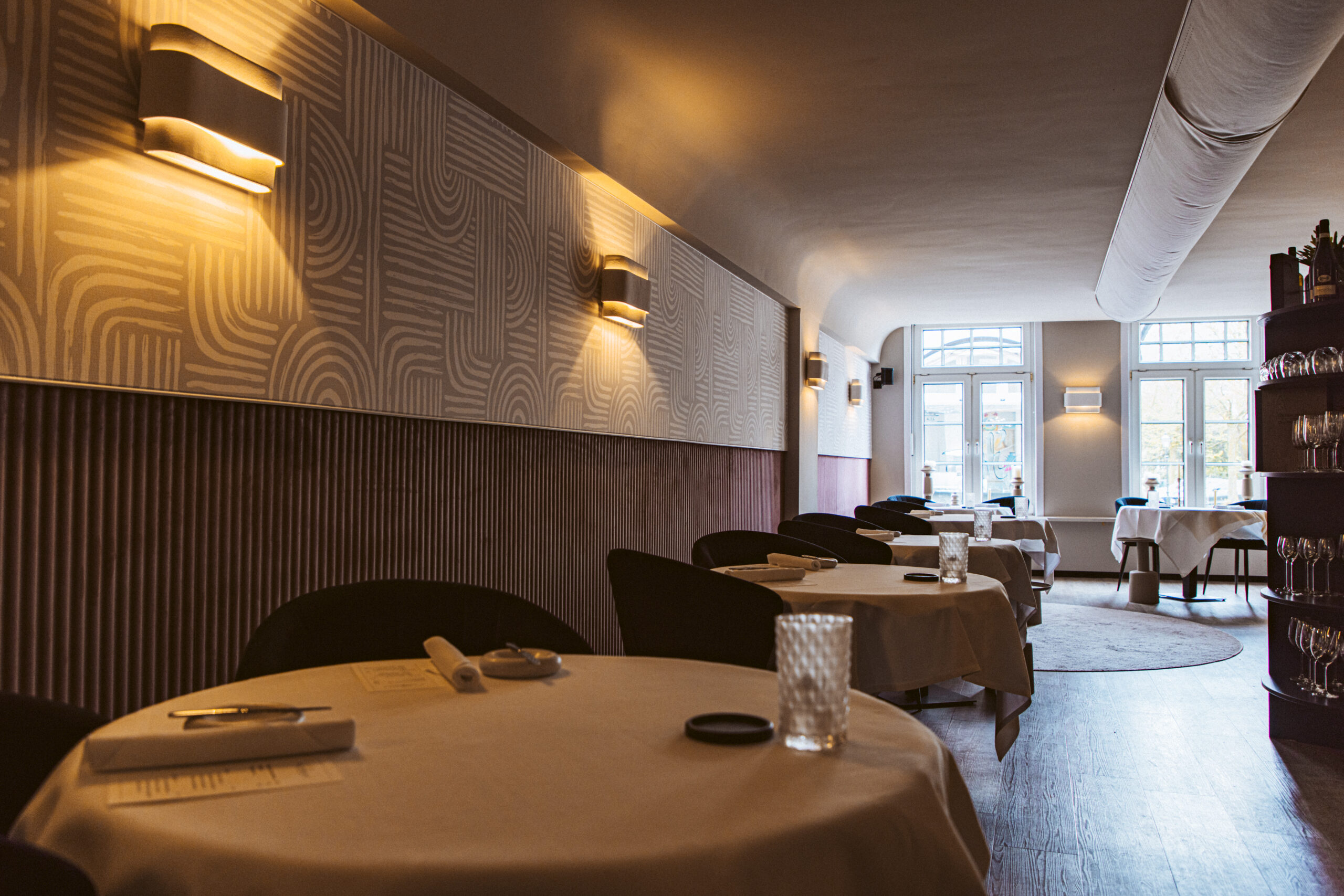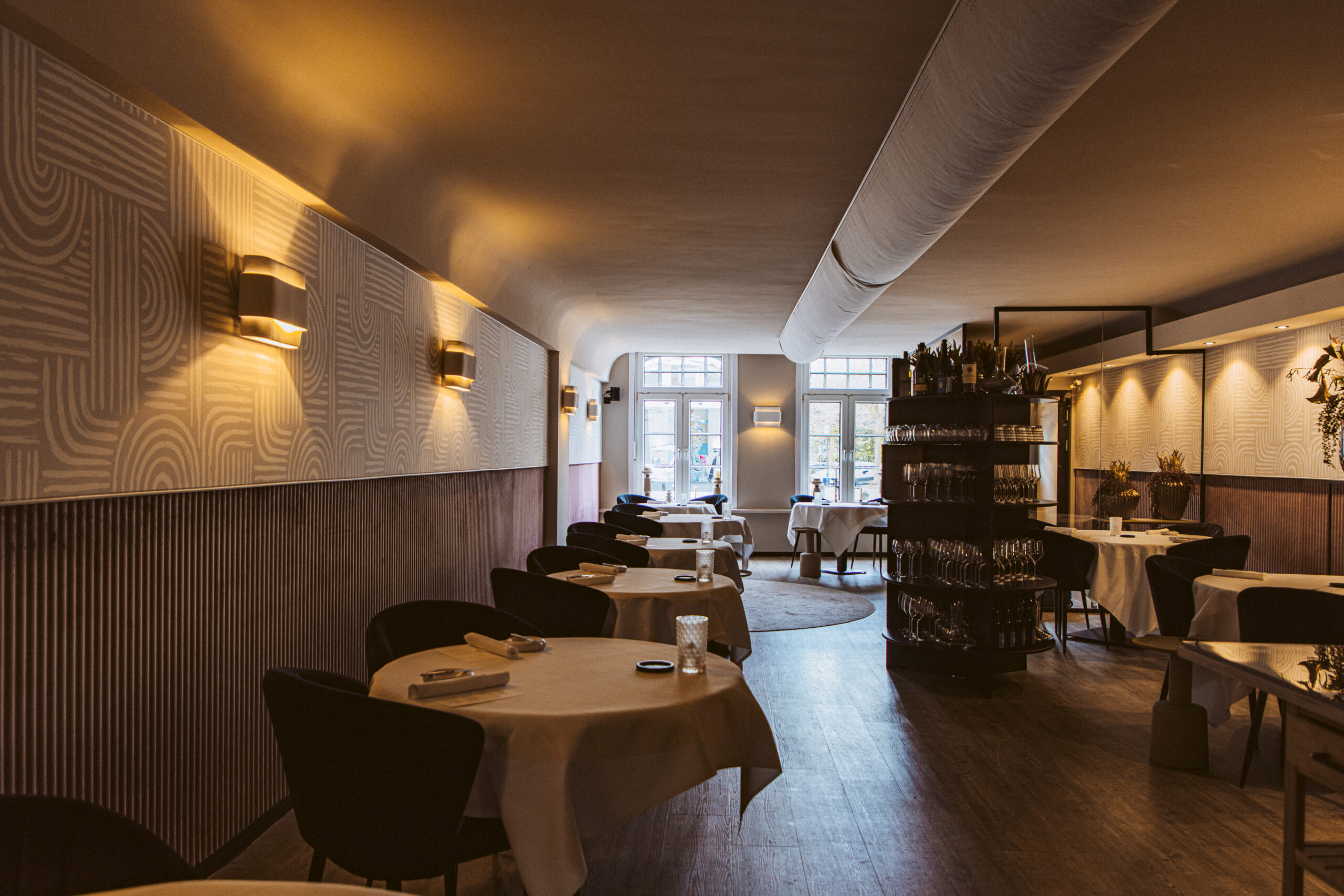In samenwerking met HUUS design hebben we voor een aangename akoestiek mogen zorgen door het toepassen van een prachtige velvet lambrisering van Slalom, met daarboven een volledig op maat gemaakte akoestische textielwand.