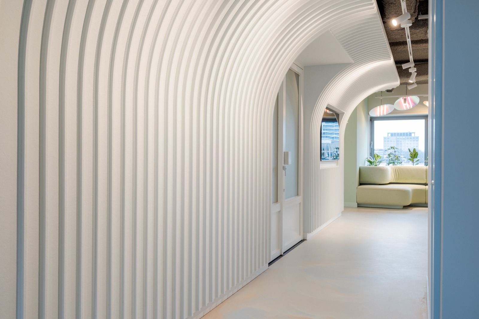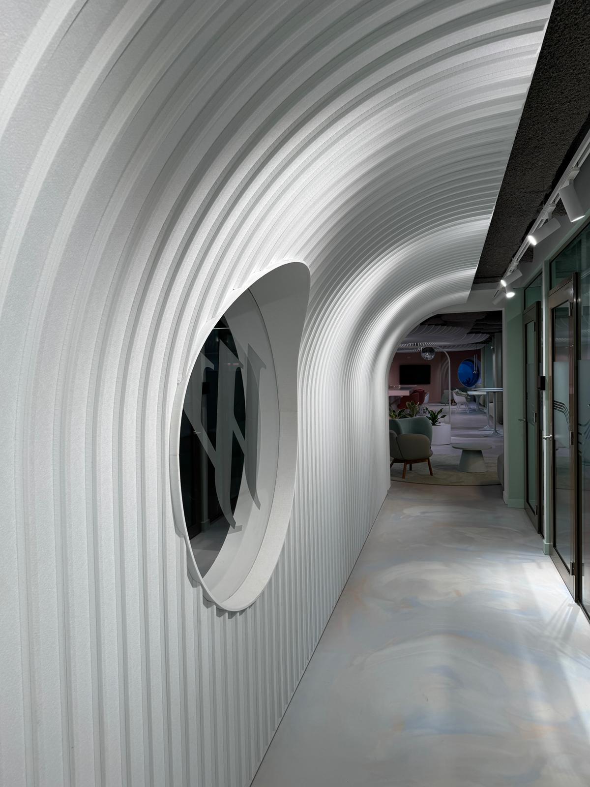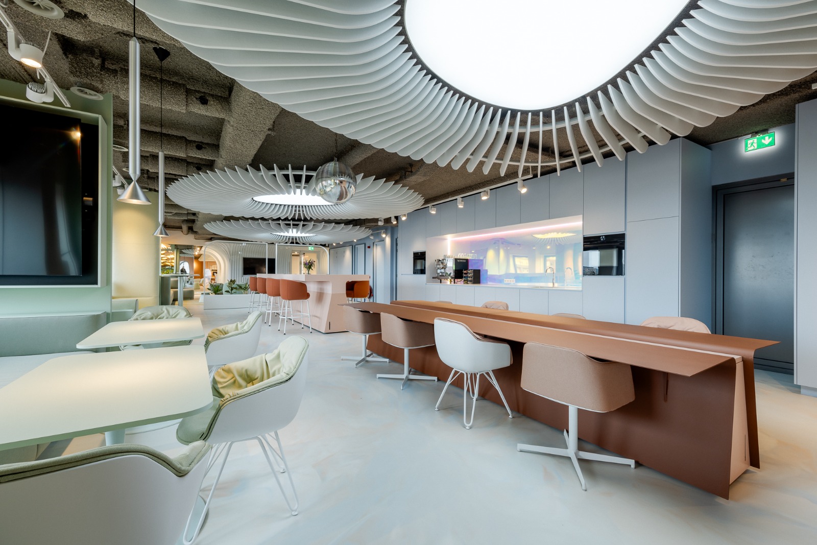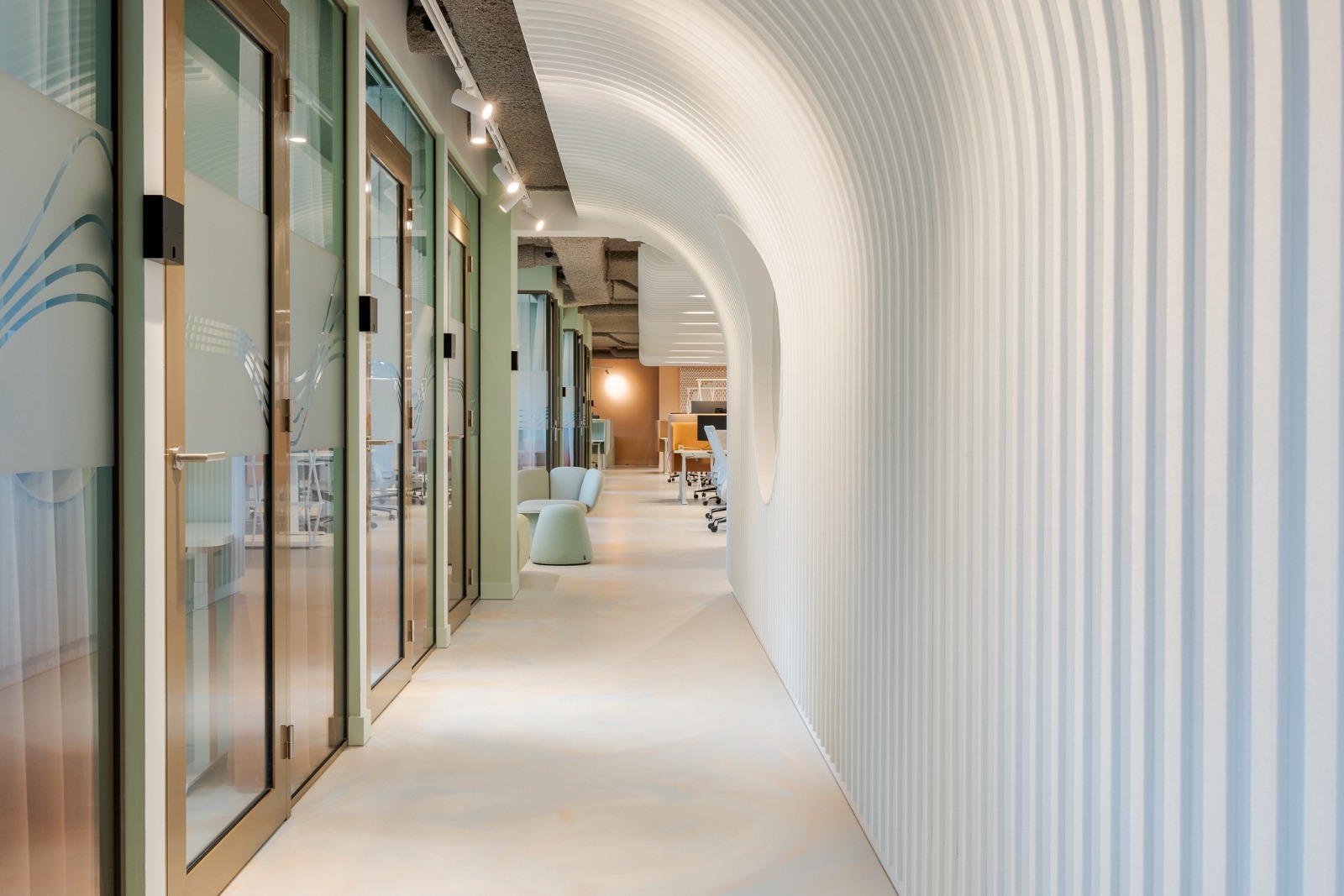 In samenwerking met Casper Schwarz en AMB en in opdracht van Make Interiors BV maakten we voor Unibail-Rodamco-Westfield deze custom-fit akoestische elementen vanaf scratch. Een stukje haarfijne engineering, een stel ”knappe koppen” en Zünd Benelux BV maken een uiterst goede combi zoals jullie kunnen zien. Én natuurlijk absoluut de complimenten voor ons monteursgilde dat ook met deze klus weer heeft gezorgd voor een fantastisch eindresultaat. Van gewaaierde PETFelt lamp (binnenkort verkrijgbaar⌛) met geïntegreerde translucente Barrisol Normalu SAS en akoestische baffles tot een unieke, organische gevormde PETFelt kernwand